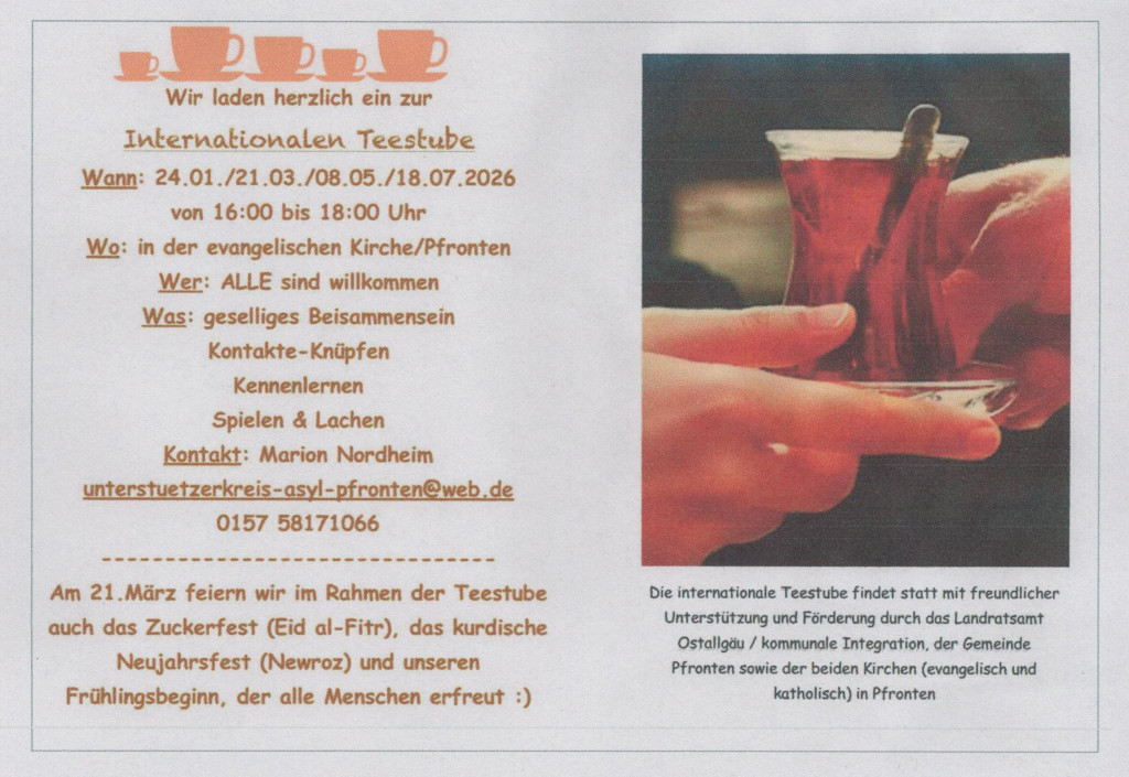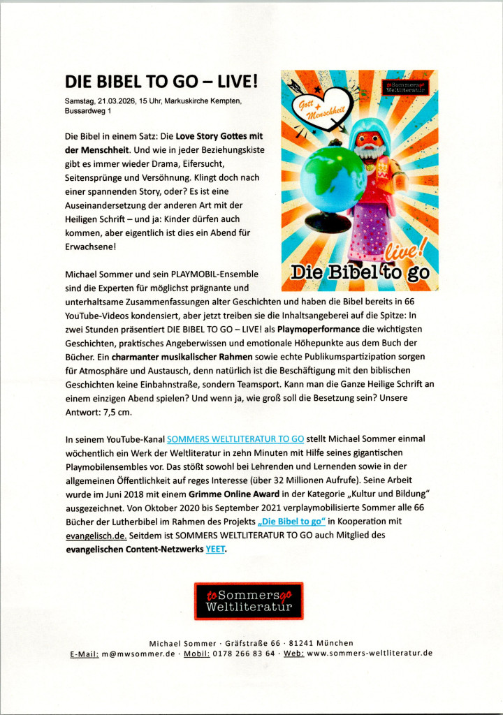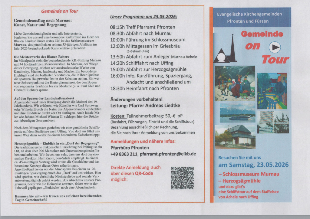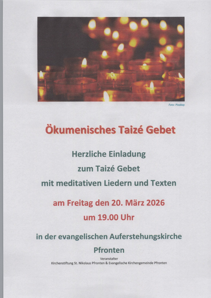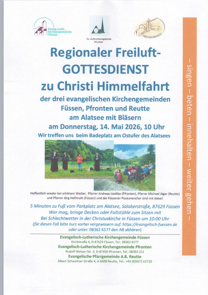 Hier finden Sie die aktuellen Plakate und Flyer unserer Gemeinde. Mit einem Rechtsklick können Sie das Bild in einem neuem Fenster öffnen. Dann lässt es sich herunterladen oder auch direkt per e-mail weiterleiten. Gerne können Sie es als Einladung an Freund*innen und Interessierte verschicken. Herzlichen Dank.